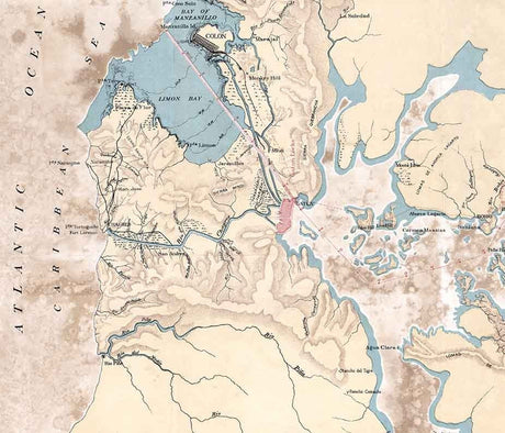 1906 Map Showing Line of Proposed Lock Canal Panama Canal Panama