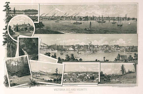 1884 Panoramic Map of Victoria British Columbia Canada