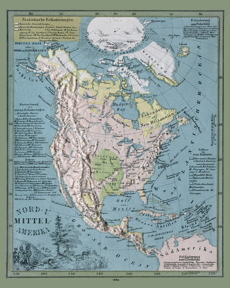 1864 Relief Map of North and Central America