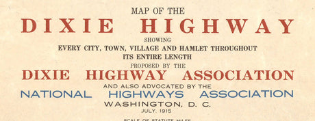 1915 Map of the Dixie Highway Illinois to Florida