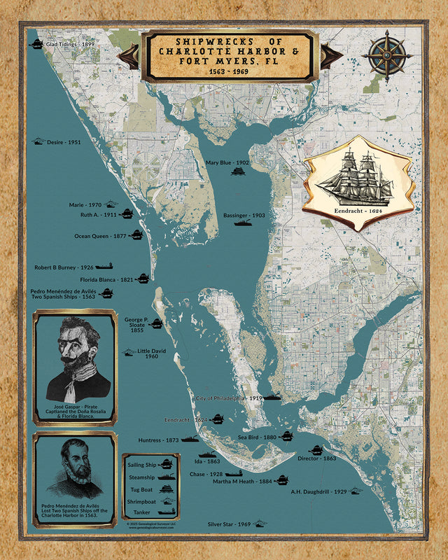 Shipwreck Map of Charlotte Harbor Florida Fort Myers Area - 16" x 20" Matte is backordered and will ship as soon as it is back in stock.