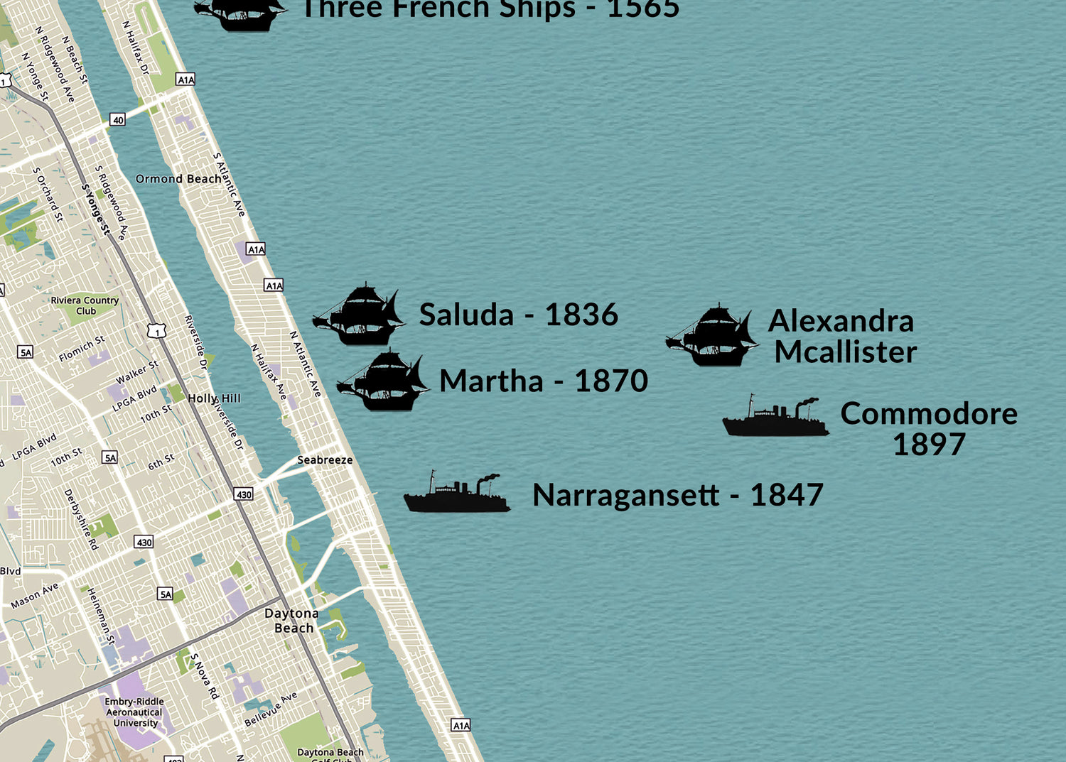 Shipwreck Map of Flagler Beach to New Smyrna Beach Florida