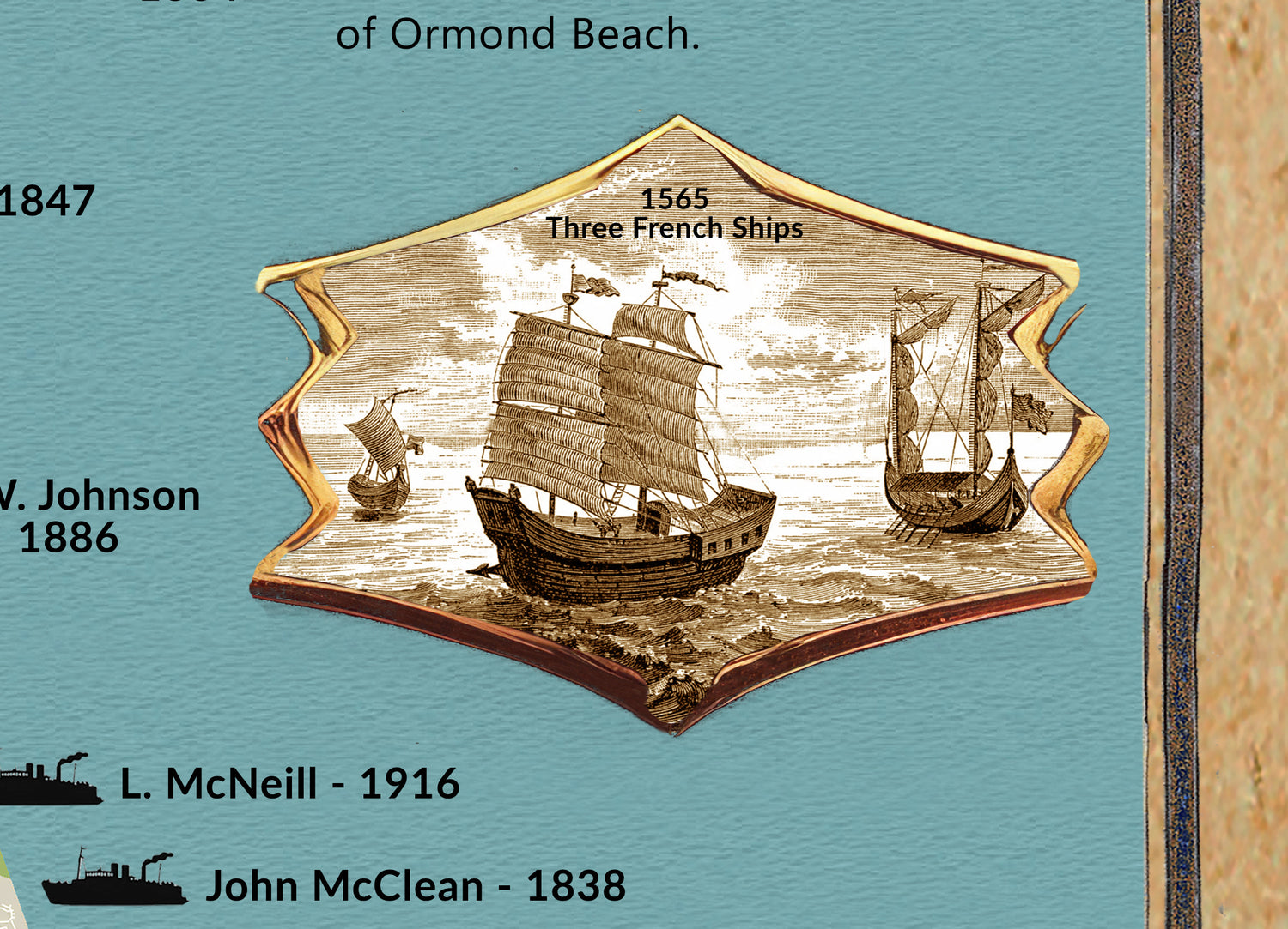 This map shows Shipwrecks of from Flagler Beach to New Smyrna Beach, Florida from 1565 through 1992. Including ships names, wreck dates, shore line detail, onshore roads and place names, ship inset drawings, and more.