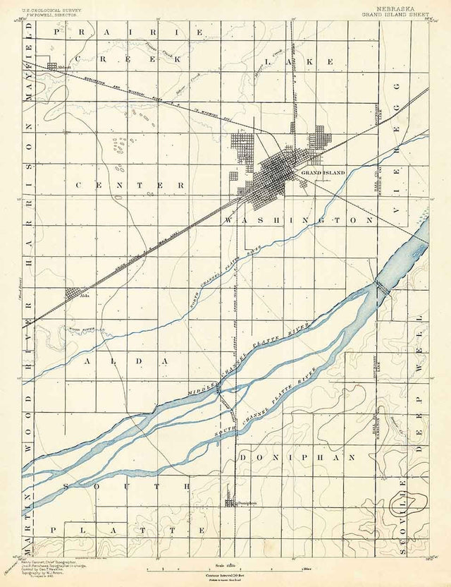 1895 Topo Map of Grand Island Nebraska Alda Abbott