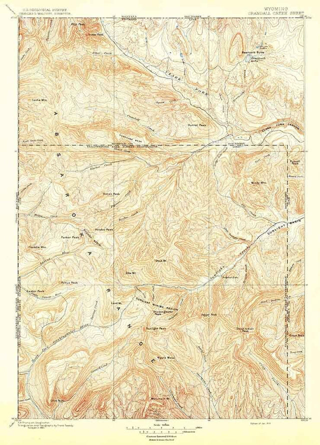 1896 Topo Map of Crandall Creek Wyoming Yellowstone - 16"x22"Matte is backordered and will ship as soon as it is back in stock.