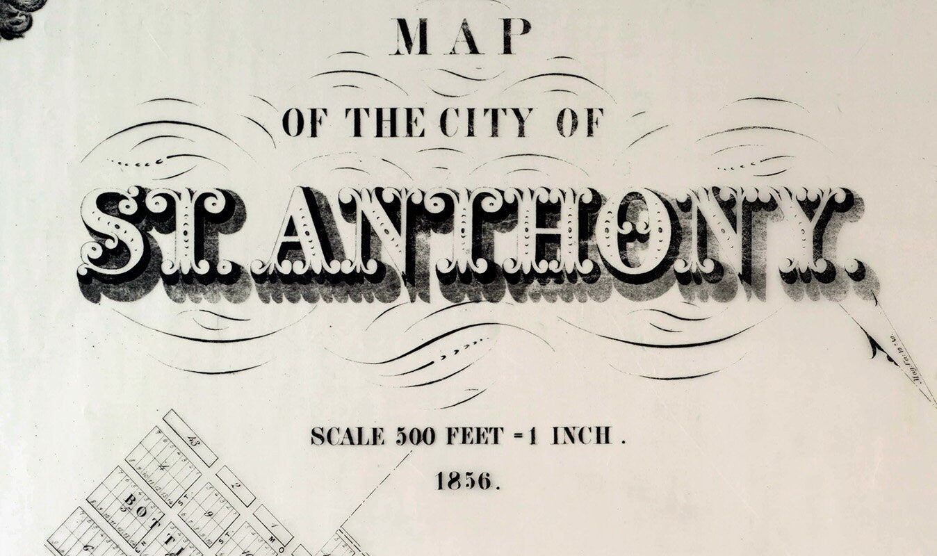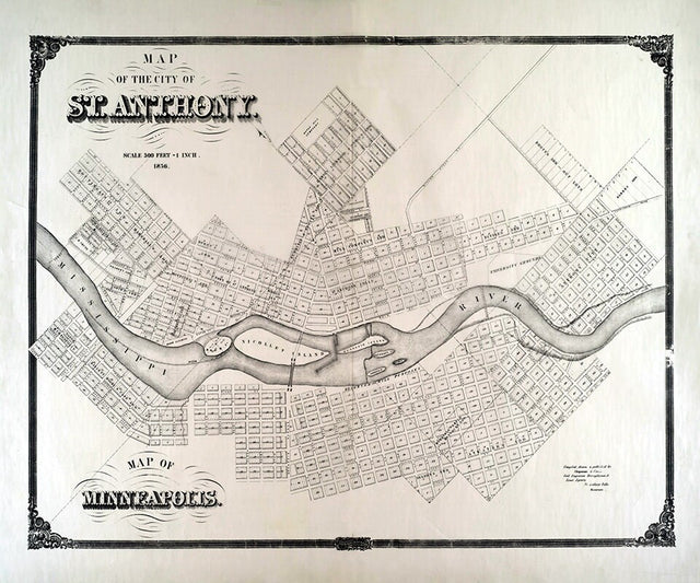 1856 Map of St Anthony and Minneapolis Minnesota - 16" x 20" Matte is backordered and will ship as soon as it is back in stock.