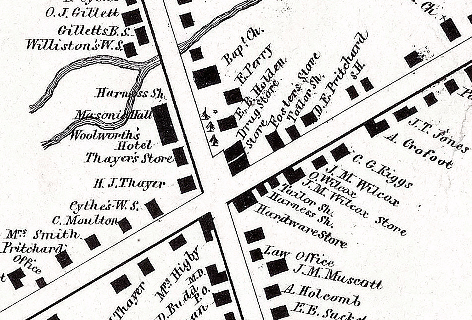 This map shows buildings, names, historic places, place names, roads, and more.