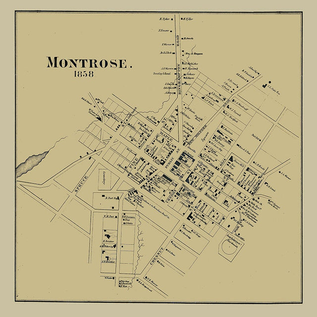 1858 Map of Montrose Susquehanna County Pennsylvania - 16" x 16" Matte is backordered and will ship as soon as it is back in stock.