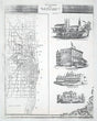This map shows the town of Racine including buildings, streets, blocks, water ways, inset drawings, and more.