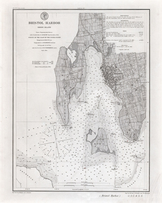 1864 Nautical Chart of Bristol Harbor Rhode Island