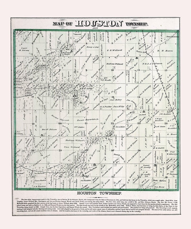 1872 Map of Houston Township Adams County Illinois - 16" x 20" Matte is backordered and will ship as soon as it is back in stock.