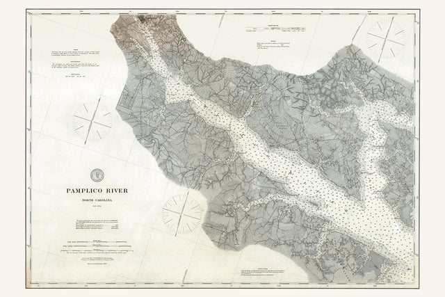 This map shows water depths, shore line detail, place names, roads, buildings, and more.