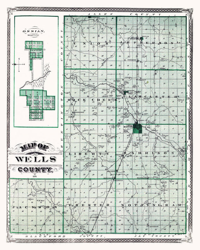 1876 Map of Wells County Indiana - 16" x 20" Matte is backordered and will ship as soon as it is back in stock.