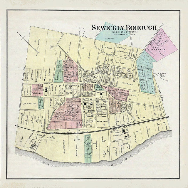 1877 Town Map of Sewickly Borough Allegheny County Pennsylvania - Heavy Weight Matte is backordered and will ship as soon as it is back in stock.