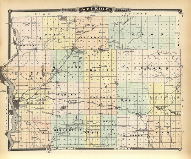 1878 Map of St Croix County Wisconsin - 20" x 24" Matte is backordered and will ship as soon as it is back in stock.