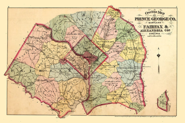1879 Map of Prince George County Maryland Fairfax and Alexandria Virginia