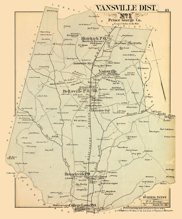 1879 Map of Vansville District Montgomery County Maryland - 16" x 20" Matte is backordered and will ship as soon as it is back in stock.