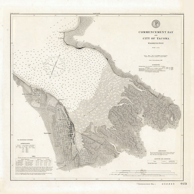 1888 Nautical Chart of Commencement Bay and City of Tacoma Washington