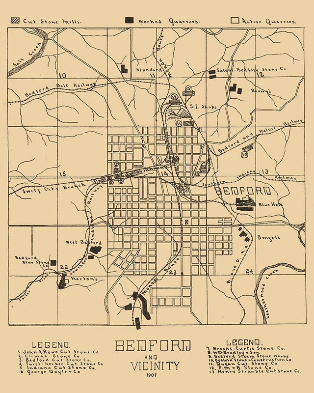 1907 Town Map of Bedford Lawrence County Indiana - 16" x 20" Matte is backordered and will ship as soon as it is back in stock.