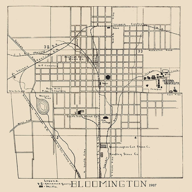 1907 Town Map of Bloomington Monroe County Indiana - 16" x 16" Matte is backordered and will ship as soon as it is back in stock.