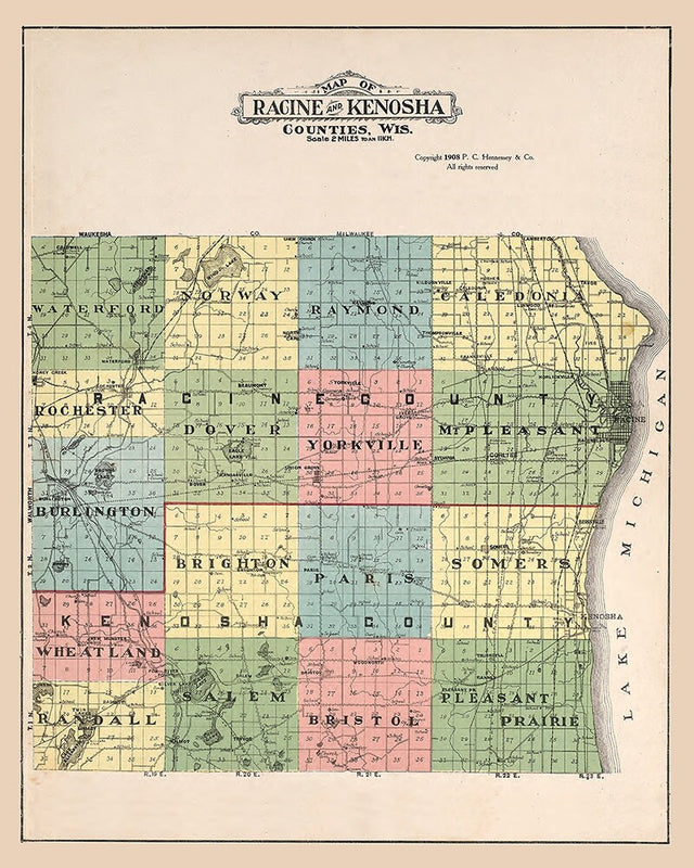 1908 Map of Racine and Kenosha County Wisconsin - 11" x 14" Matte is backordered and will ship as soon as it is back in stock.