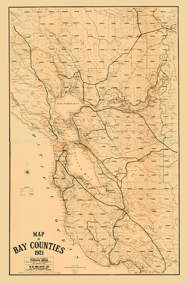 1921 Map of Bay Counties California - 20" x 30" Matte is backordered and will ship as soon as it is back in stock.