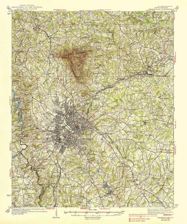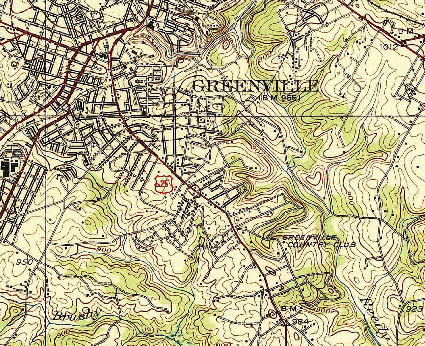1938 Topo Map of Greenville South Carolina Quadrangle