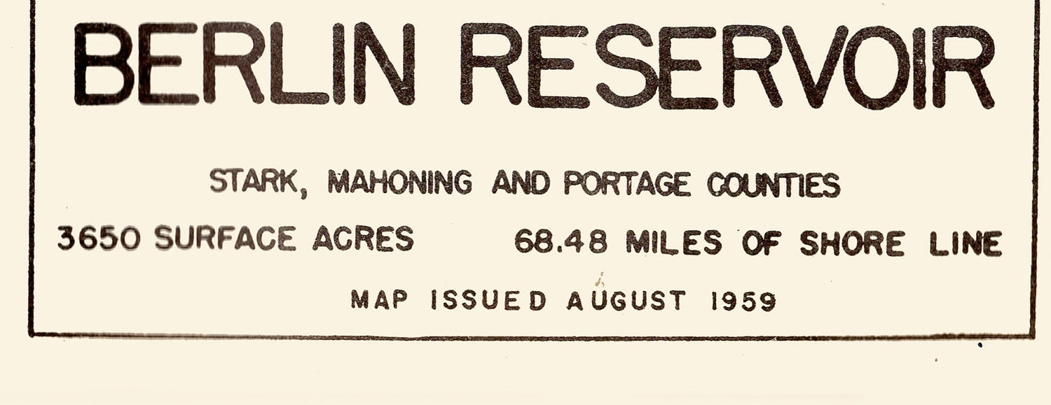 1959 Map of Berlin Lake Reservoir Stark Mahoning and Portage County Ohio